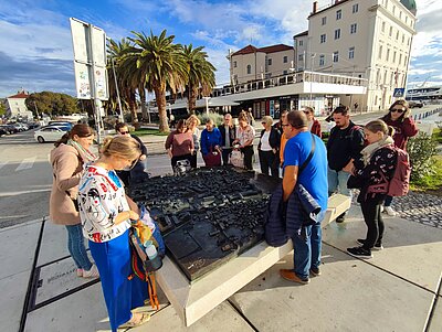 Ein weiterer Teil hospitierte am Gymnasium mit Kunstschwerpunkt in Split. Auch wenn die Räumlichkeiten eher einfach sind, beeindruckten die gut ausgestatteten Werkstätten und vor allem das außergewöhnlich hohe Niveau der Schüler*innen. "Die Konzentration und das handwerkliche Können, das hier zu sehen ist, hat mich tief beeindruckt. Man spürt, dass Kunst hier nicht nur ein Fach ist, sondern eine Lebenseinstellung", berichtete eine Kunstlehrerin aus der Gruppe. Die Hospitationen zeigten, wie künstlerische Bildung auf höchstem Niveau stattfinden kann, wenn Motivation der Lernenden und Expertise der Lehrenden zusammenkommen.