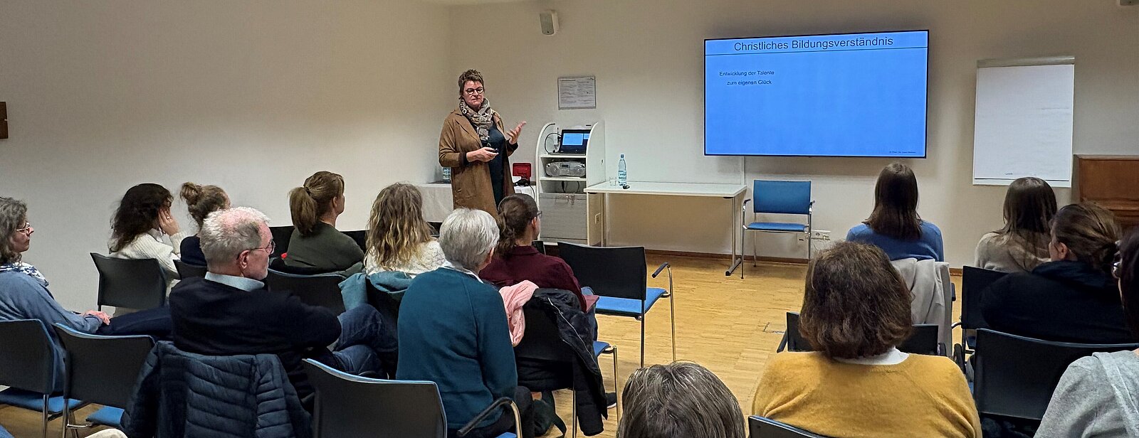 Bereits zu Beginn ihres Vortrags machte Weber deutlich, dass Persönlichkeitsbildung heute dringlicher denn je erscheint. Begriffe wie Mut, Verantwortungsbewusstsein, Empathie, Dialogfähigkeit oder kritisches Denken seien Fähigkeiten, die Menschen angesichts globaler Herausforderungen dringend benötigten. Gleichzeitig warnte sie vor der verbreiteten Wahrnehmung, die Gegenwart sei in besonderer Weise von Umbrüchen geprägt. Als Kirchenhistorikerin wisse sie: „Menschen hatten in jeder Epoche das Gefühl, in einer besonders herausfordernden Zeit zu leben.“ Dennoch seien die aktuellen Transformationsprozesse – etwa durch Digitalisierung, Globalisierung oder künstliche Intelligenz – spürbar. Hinzu kämen Krisenerfahrungen der vergangenen Jahre, von der Corona-Pandemie bis zu militärischen Konflikten in Europa. Wissenschaftler sprächen daher von einer „Polikrise“, so Weber.